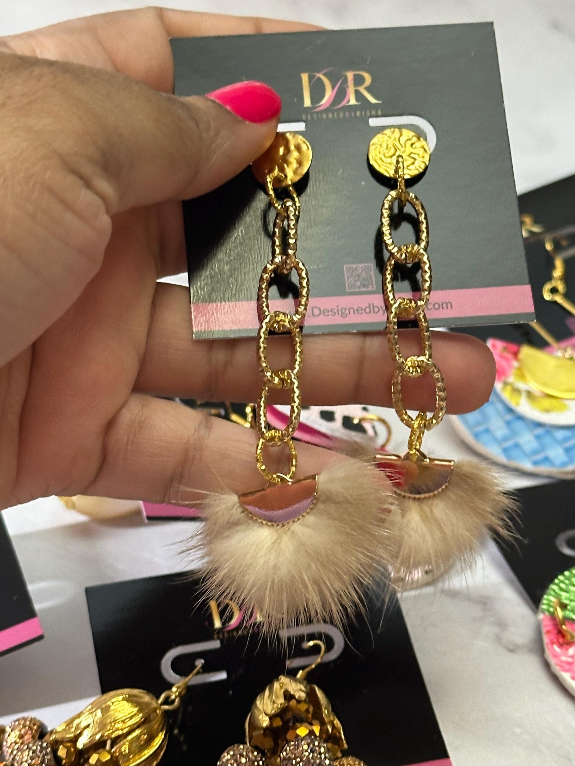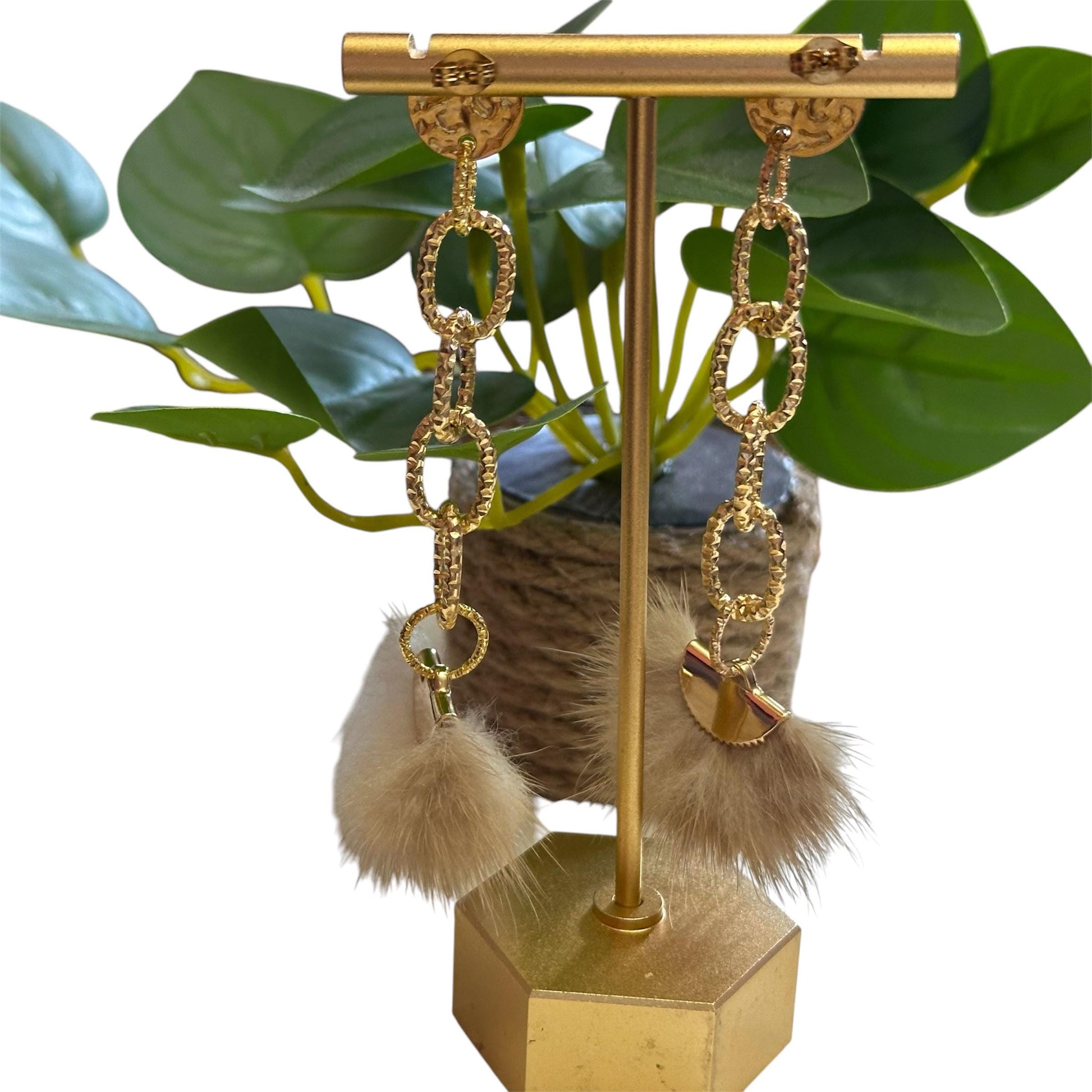 Fur Statement Earrings, Brown Earrings, Mothers Day Jewelry, Gold Earrings, Trendy Earrings, Dangle Earrings, Long Earrings Dangle Earrings