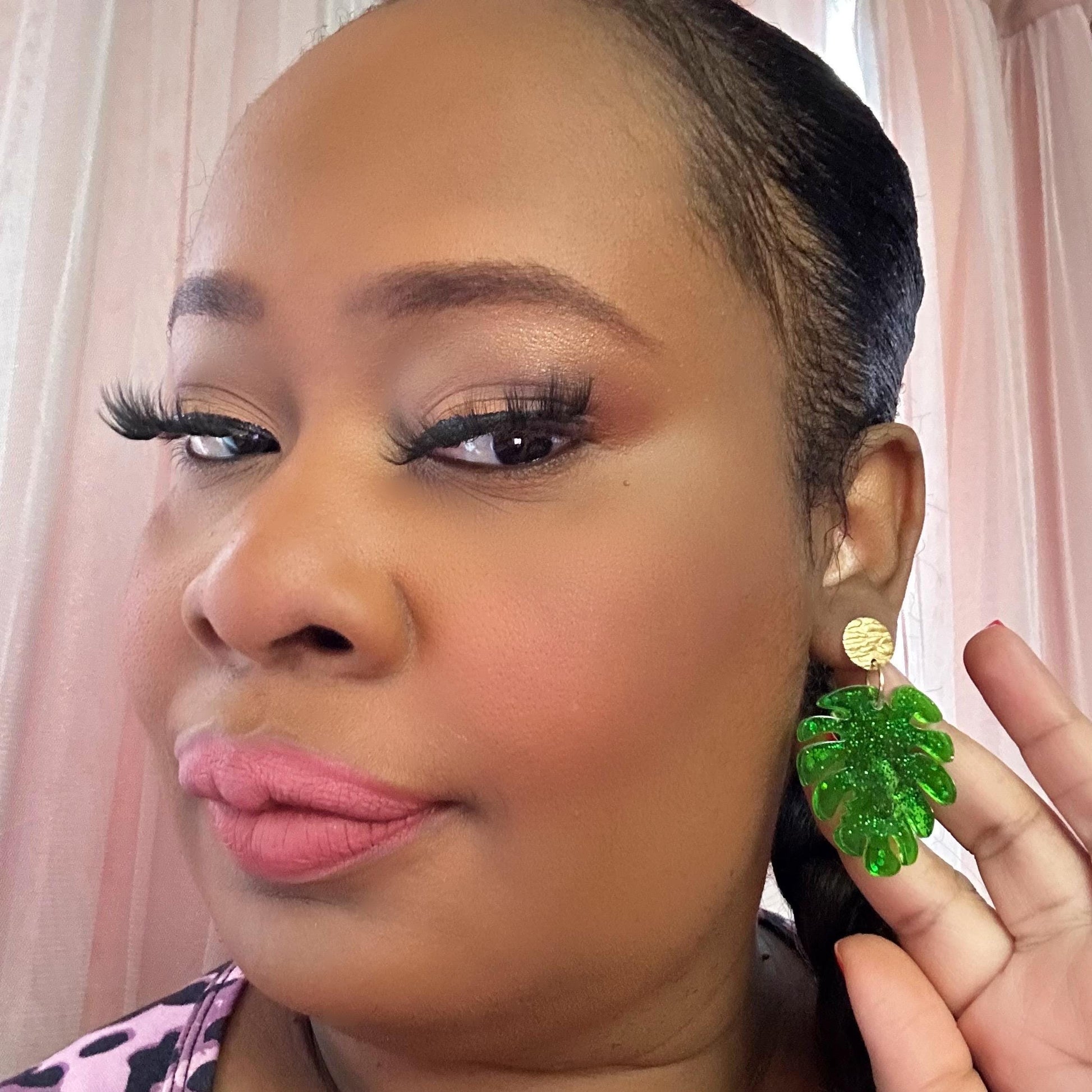 These bold and beautiful Tropical Monstera Leaf Earrings, handcrafted to bring a pop of paradise to your look. Made from high-quality resin, each leaf bursts with vibrant green glitter, creating a dazzling sparkle in the light. The earrings are finished with textured gold hammered stud tops for a touch of elegance and contrast.