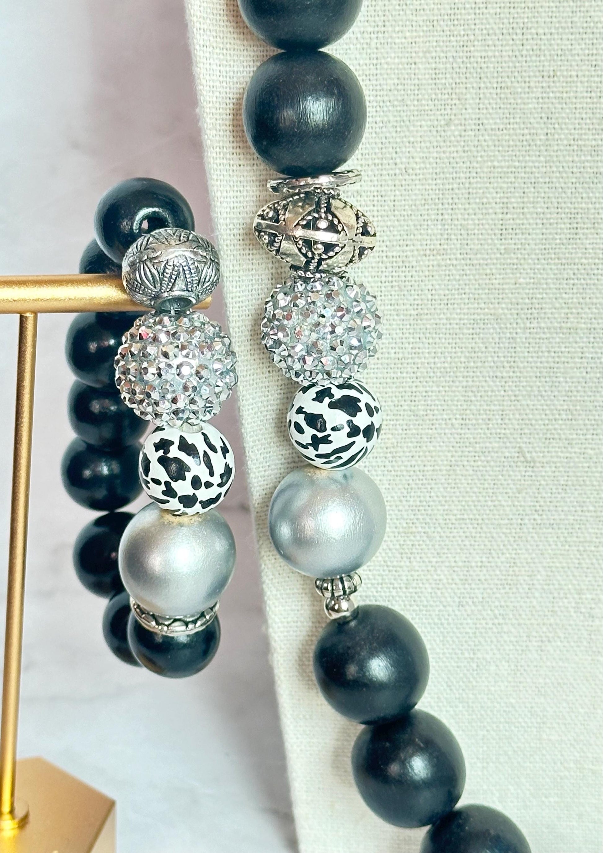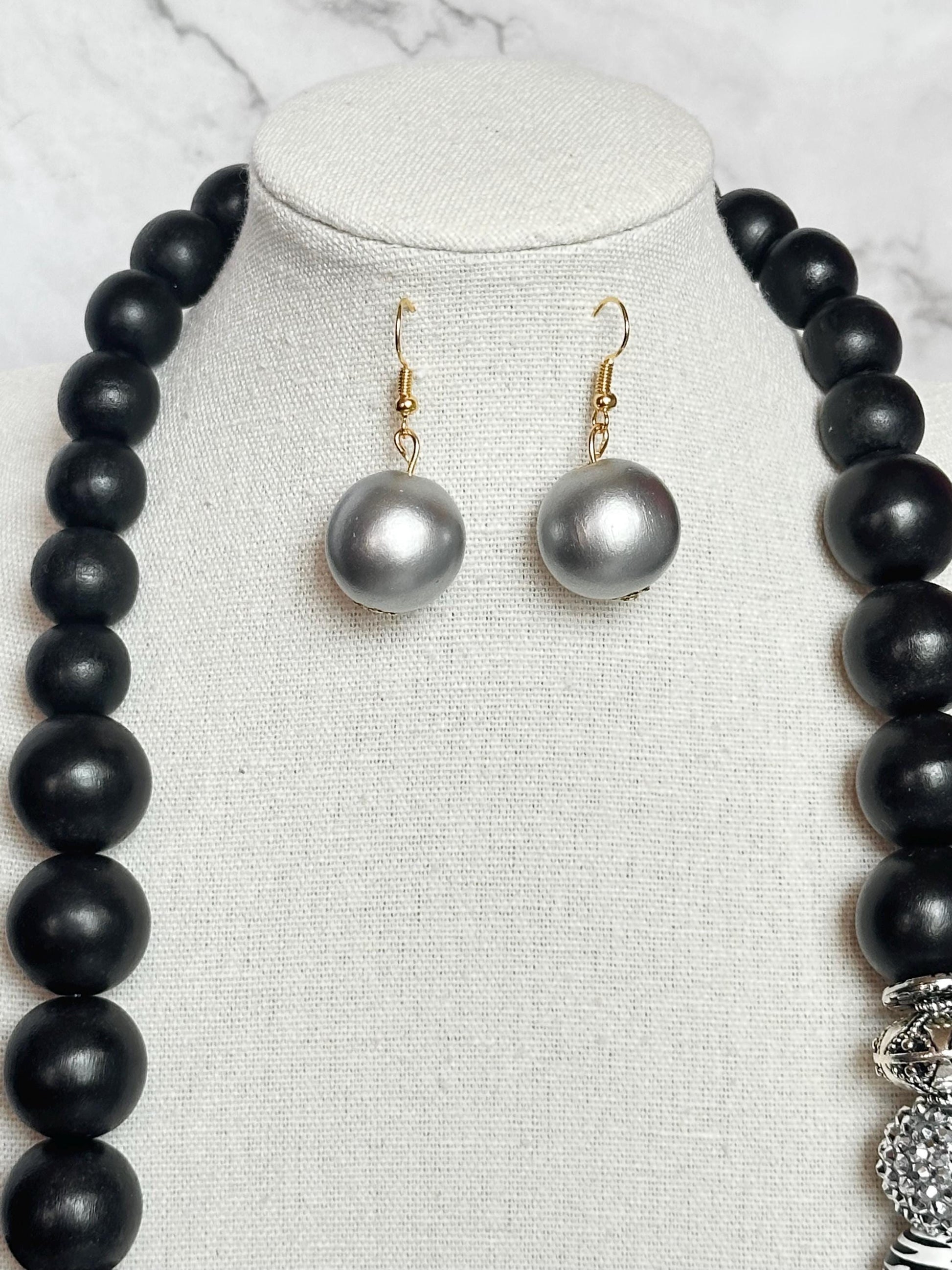 Wood Statement Necklace Black Gold Beaded Necklace Fashionable Chunky Long Multi Strand Necklace Gift For Her Handmade Jewelry Necklace Set