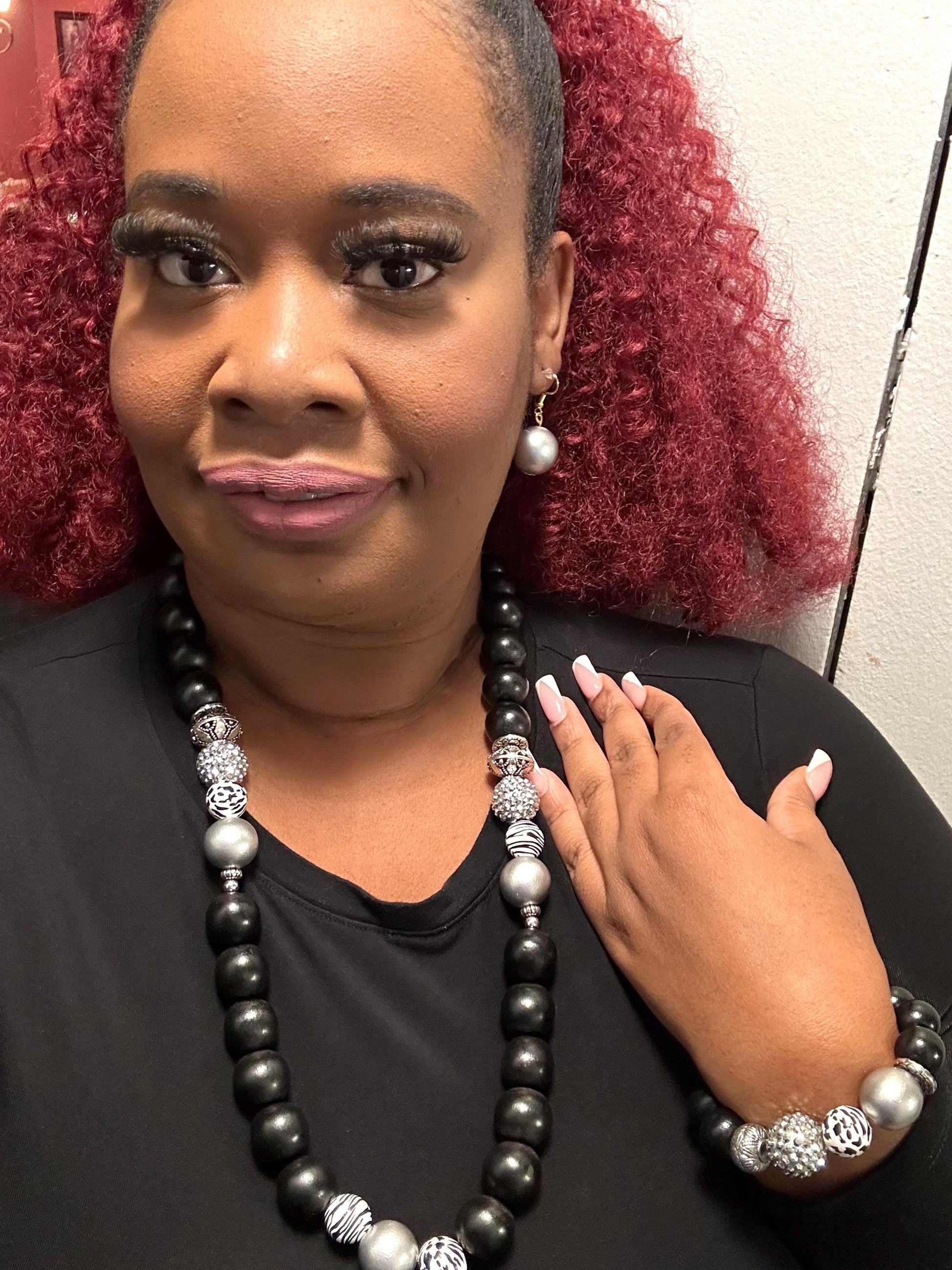 This stunning necklace set is a true work of art, blending natural materials with a modern, eye-catching silhouette. Whether treating yourself or surprising that special someone, this handmade jewelry piece is guaranteed to make a lasting impression and become a cherished wardrobe staple.